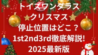 ディズニー トイズワンダラスクリスマス停止位置はどこ?1st2nd3rdそれぞれ徹底解説!2025最新版 2025年11月11日からスタートする東京ディズニーランドの新しいクリスマスパレード「トイズ・ワンダラス・クリスマス!」。10年ぶりに完全リニューアルされるパレードとあって、すでに大きな注目を集めていますよね!この記事では、パレード鑑賞で最... 2025.10.10 ディズニー
